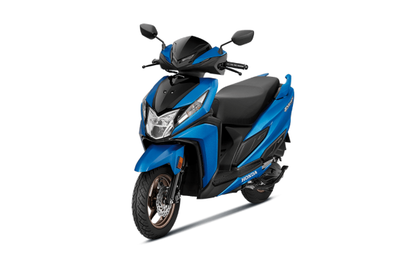Honda Dio 125 is a scooter available in 2 variants and 7 colours. The Honda Dio 125 is powered by 123.92cc BS6 engine which develops a power of 8.16 bhp and a torque of 10.4 Nm. With front disc and rear drum brakes, Honda Dio 125 comes up with combined braking system of both wheels. This Dio 125 scooter weighs 104 kg and has a fuel tank capacity of 5.3 liters.
